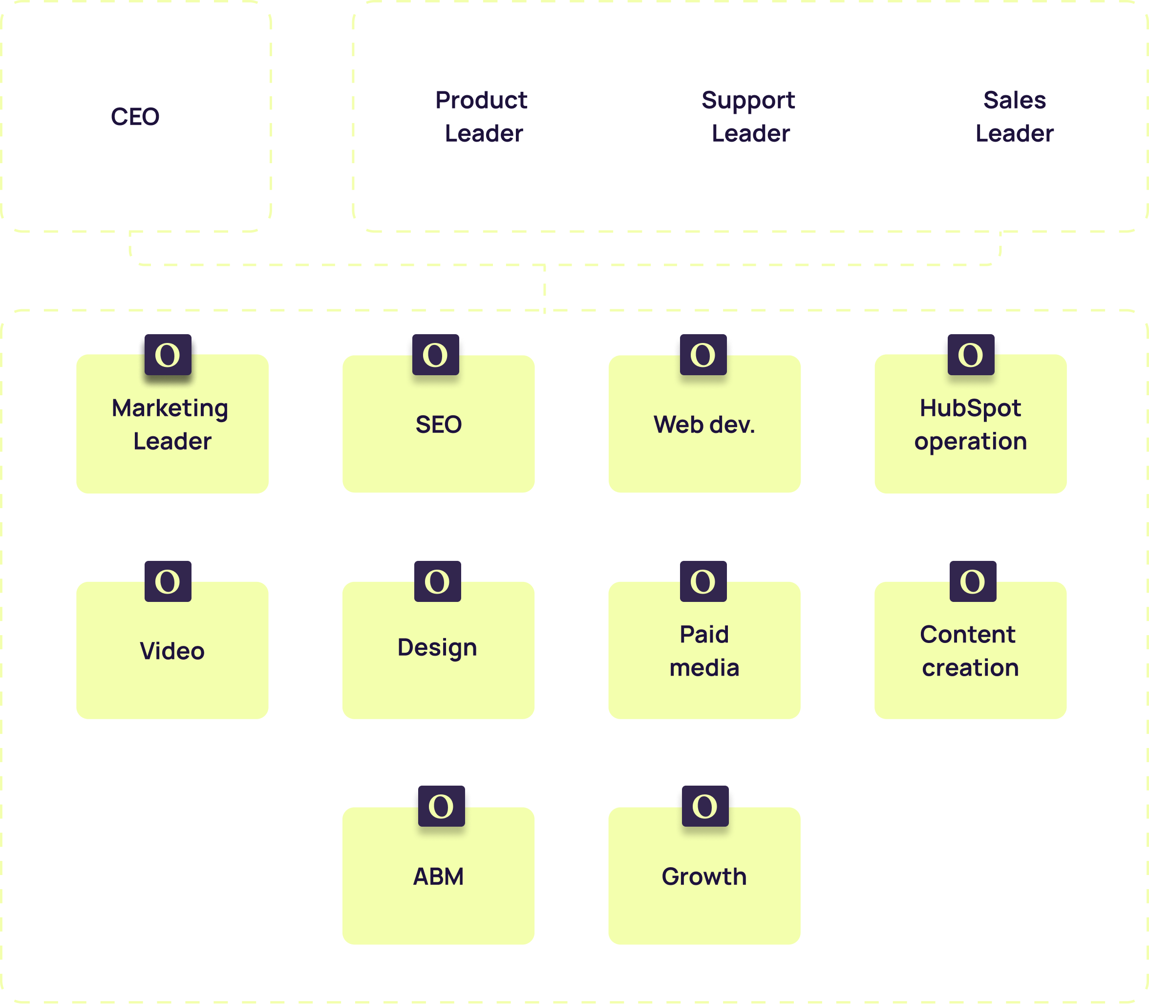 One fractional marketing team for your entire go-to-market. No more segmented agencies doing different parts of the whole.